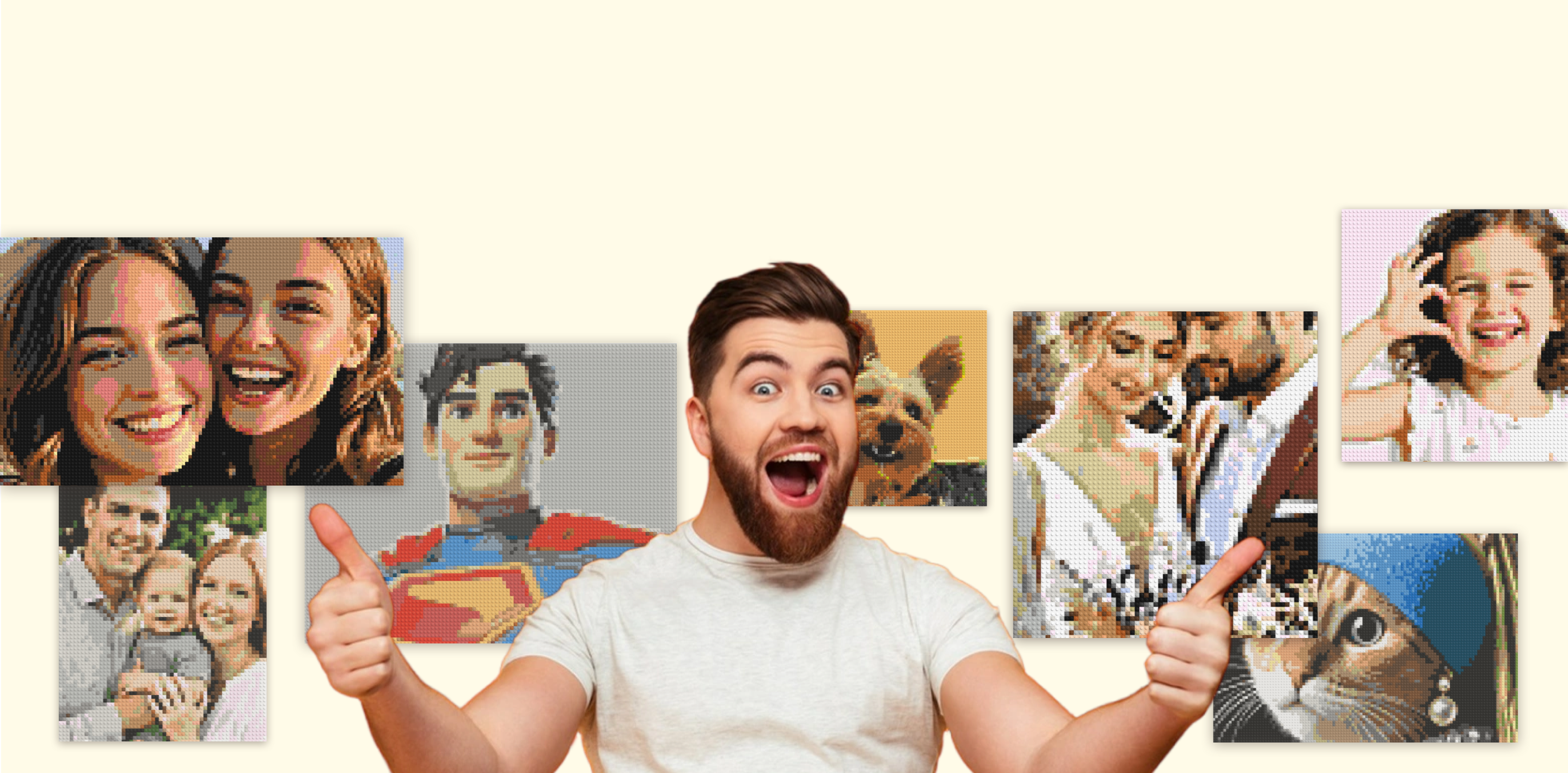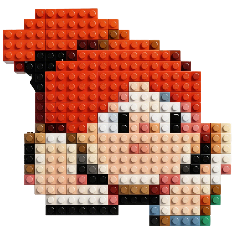 Create your own custom brick mosaic for free using our web-app. Order your all-in-one kit with bricks, baseplates, and easy-to-follow instructions to build your unique brick art - just like a paint-by-numbers puzzle!